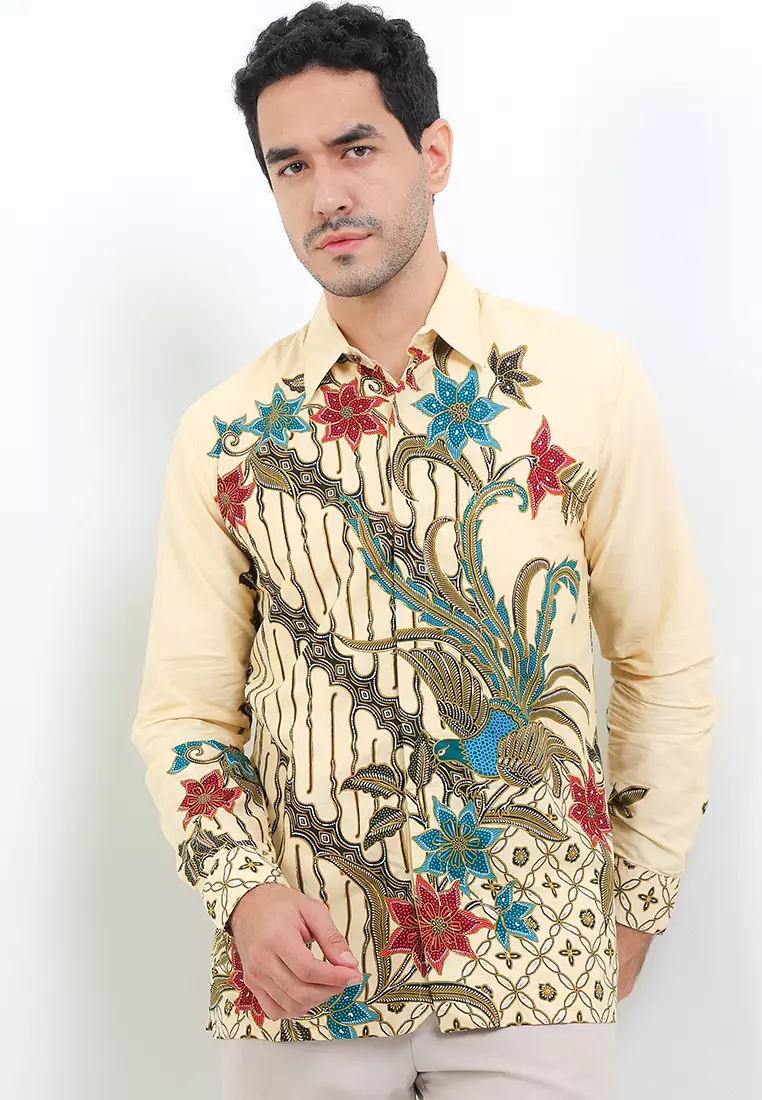 Kemeja Pria Lengan Panjang Furing Nayako Katun Lining Cream Prada