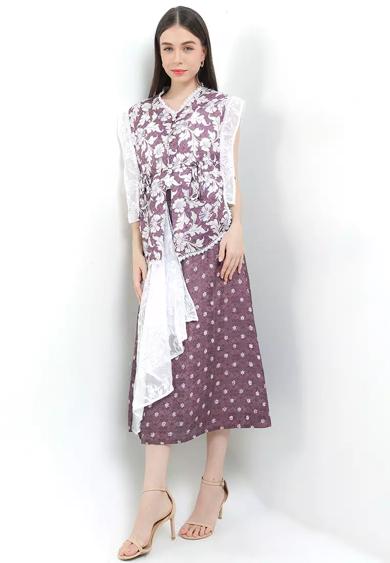 Setelan Batik Cap Atasan Outer Cardigan dan Rok Skirt Wanita Merona Spesial JFW Collection Ameera Mauve