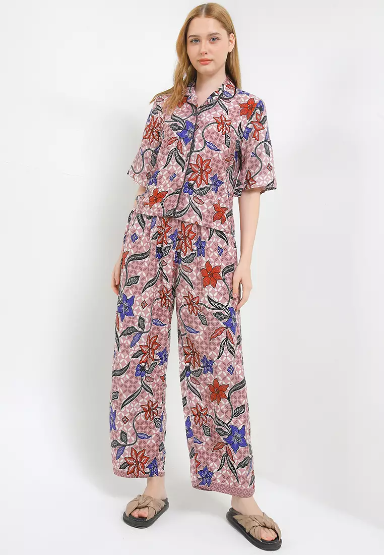 Rianty BatikSetelan Piyama Baju Tidur One Site Atasan dan Bawahan Celana Wanita Bryna Berkerah Pink539900.00399900.00