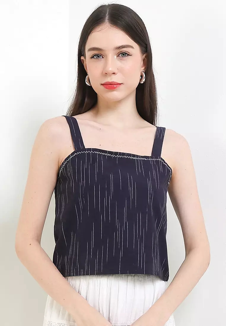 Sleeveless Inner Top Atasan Wanita Batik Lurik Binar Spesial JFW Collection Elea Navy [Tanpa Setelan]