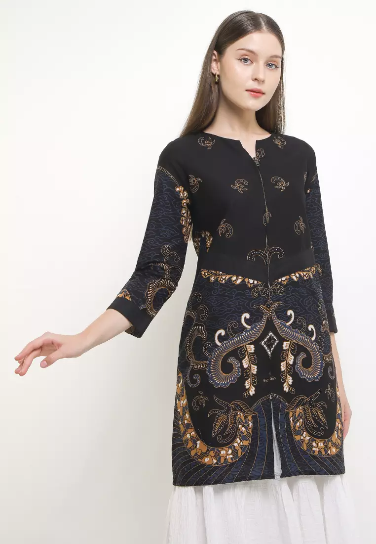 Tunik Outer Vest Cardigan Muslim Atasan Wanita Batik Katun Premium Andine Dark Lengan Panjang