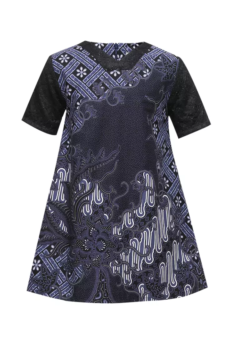 Dress Anak Perempuan Batik Davena Navy Lengan Pendek