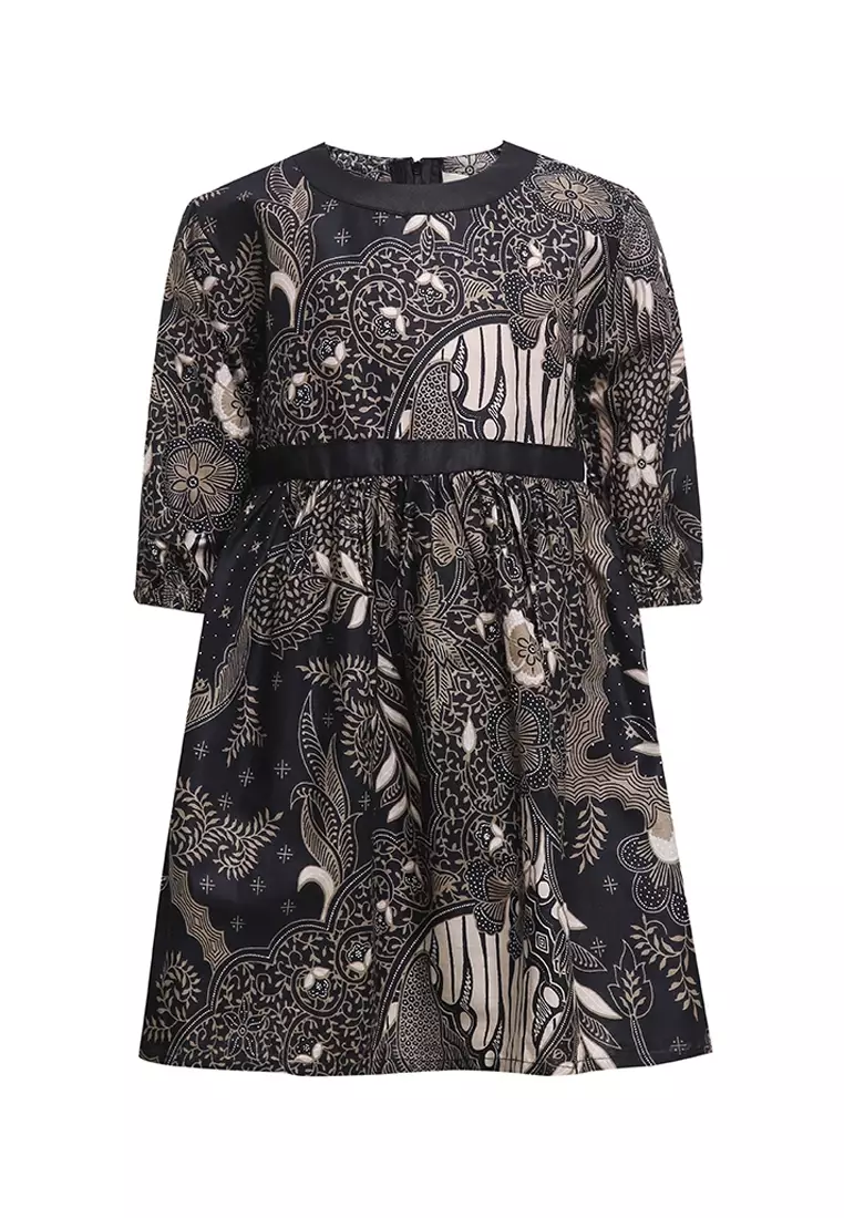 Dress Anak Perempuan Batik Levira Black Lengan 3/4