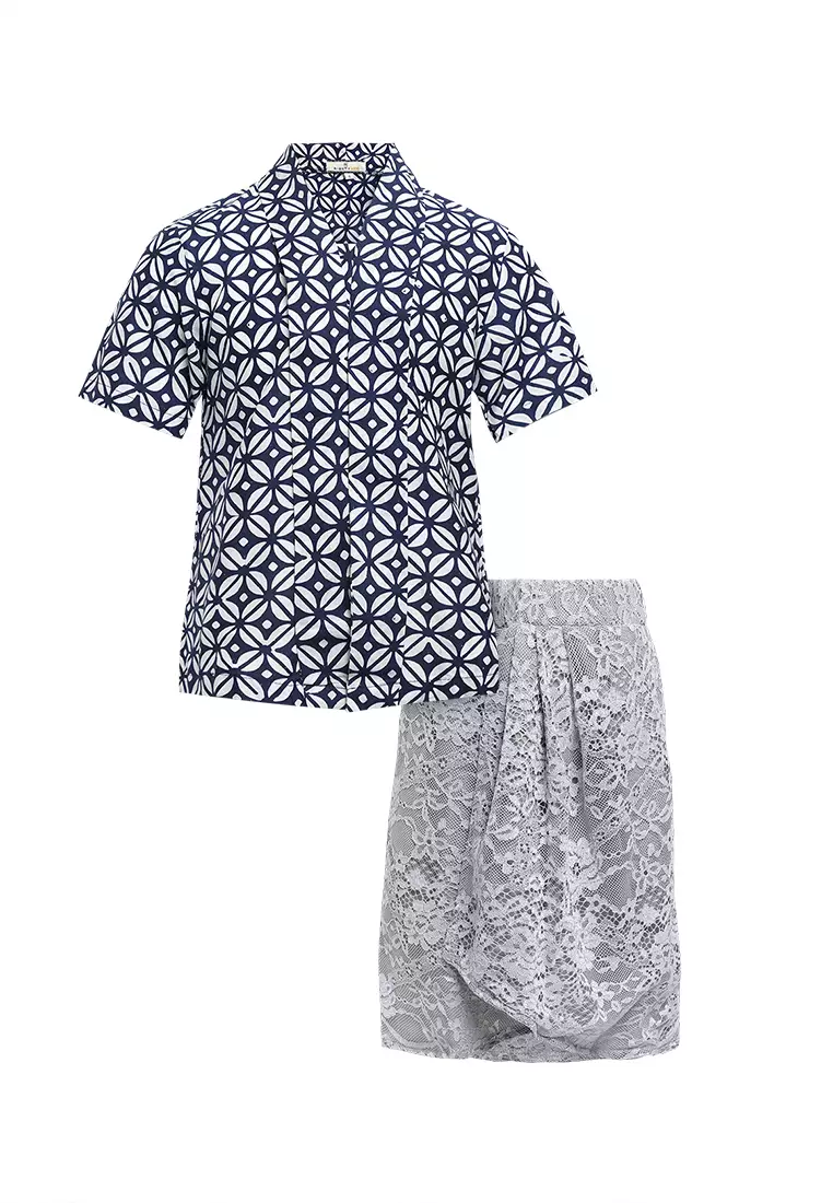 One Set Baju Anak Perempuan Kebaya Atasan dan Bawahan Rok Kids Rose Blue I