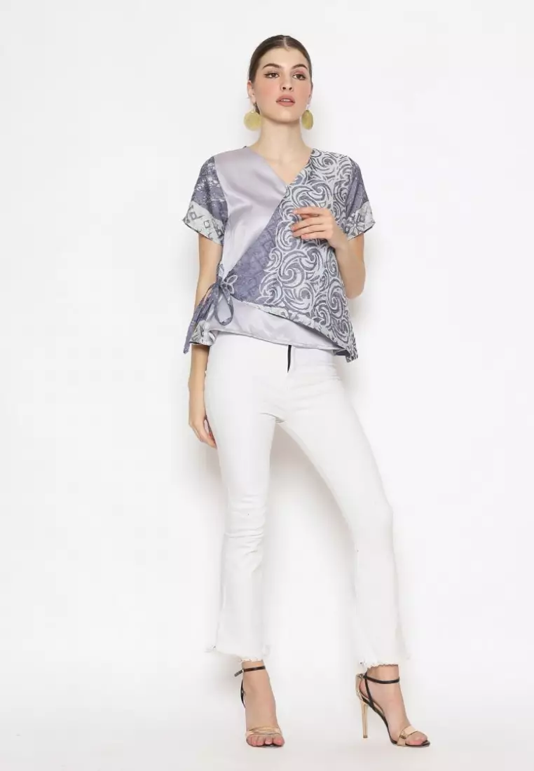 Rinjanie Batik - Blouse Batik Hapa Awan Sahaja - Atasan Batik Wanita - Blouse Batik Kantor - Blouse Batik Kekinian - Blouse Batik Ikat - Batik Cap Mix - JJQI - AS