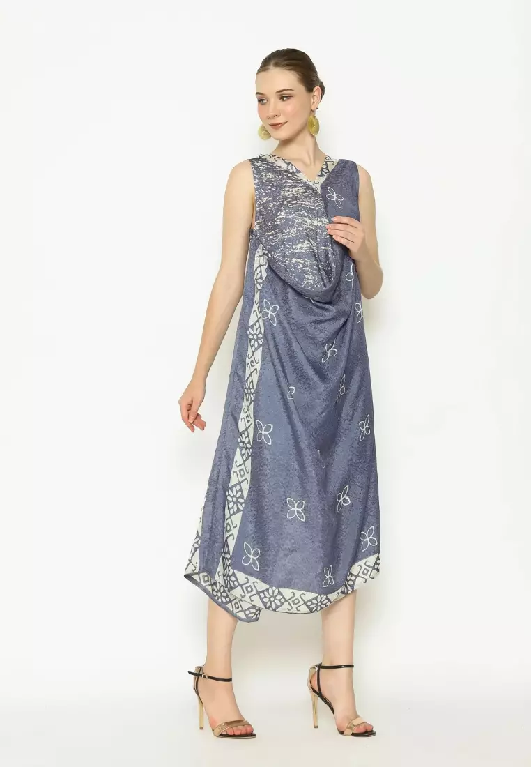 Rinjanie Batik - Dress 4 Sisi Awan Sahaja - Batik Megamendung Kontemporer - Dress Batik Unik - Dress Sleveless Batik - Dress Batik Kekinian - Batik Cap Mix - HKNS - AS