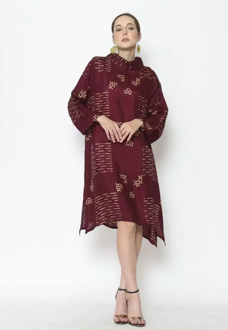 RINJANIE BATIKRinjanie Batik - Tunik Batik Bola Kerah Red Wine - Dress Dua Sisi - Batik Sogan Modern Mix - Tunik Batik Modern - Tunik Batik Kekinian - Batik Cap Mix Ciprat - DTBK - RW399900.00