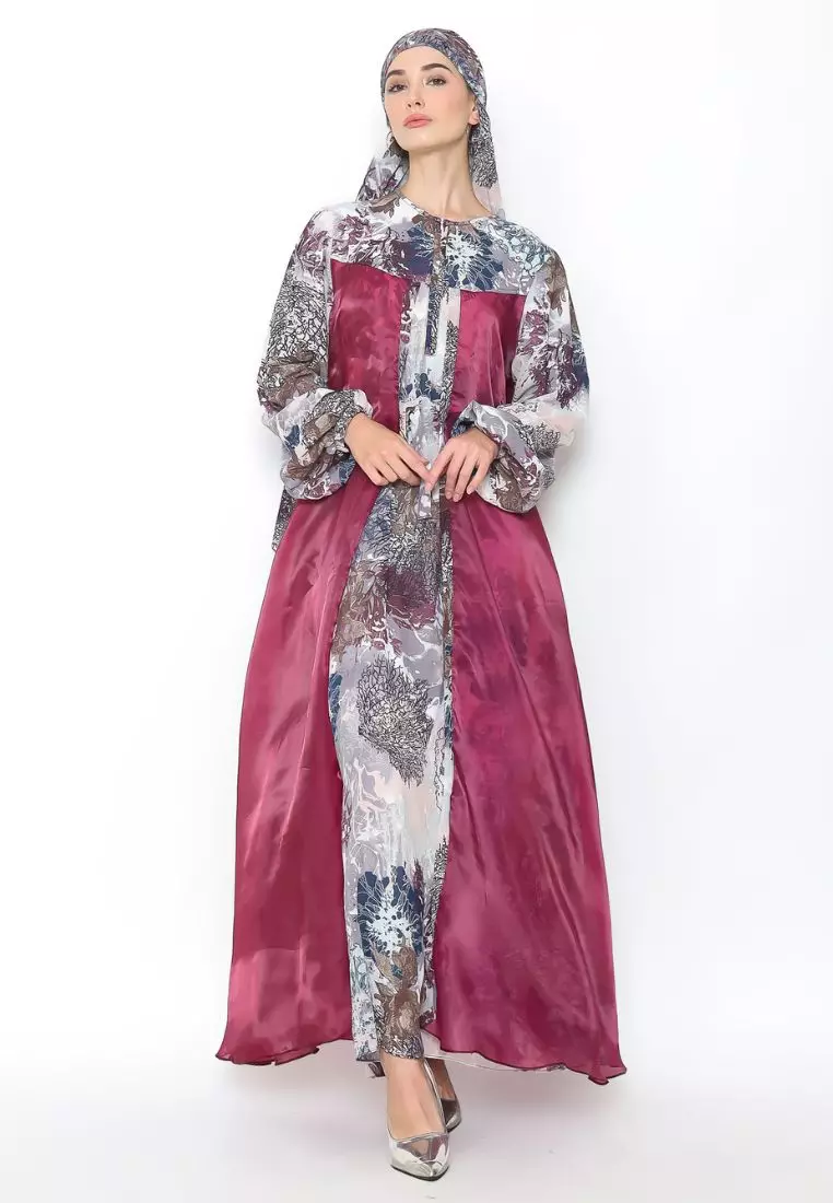 RINJANIE BATIKRinjanie x Senorita - Gamis Rosslen Red Wine - Gamis Set Scarf Raya - Gamis Set - Gamis Printing Mix Organza - Dress Raya - Dress mix organza - GMKY - RW574999.00