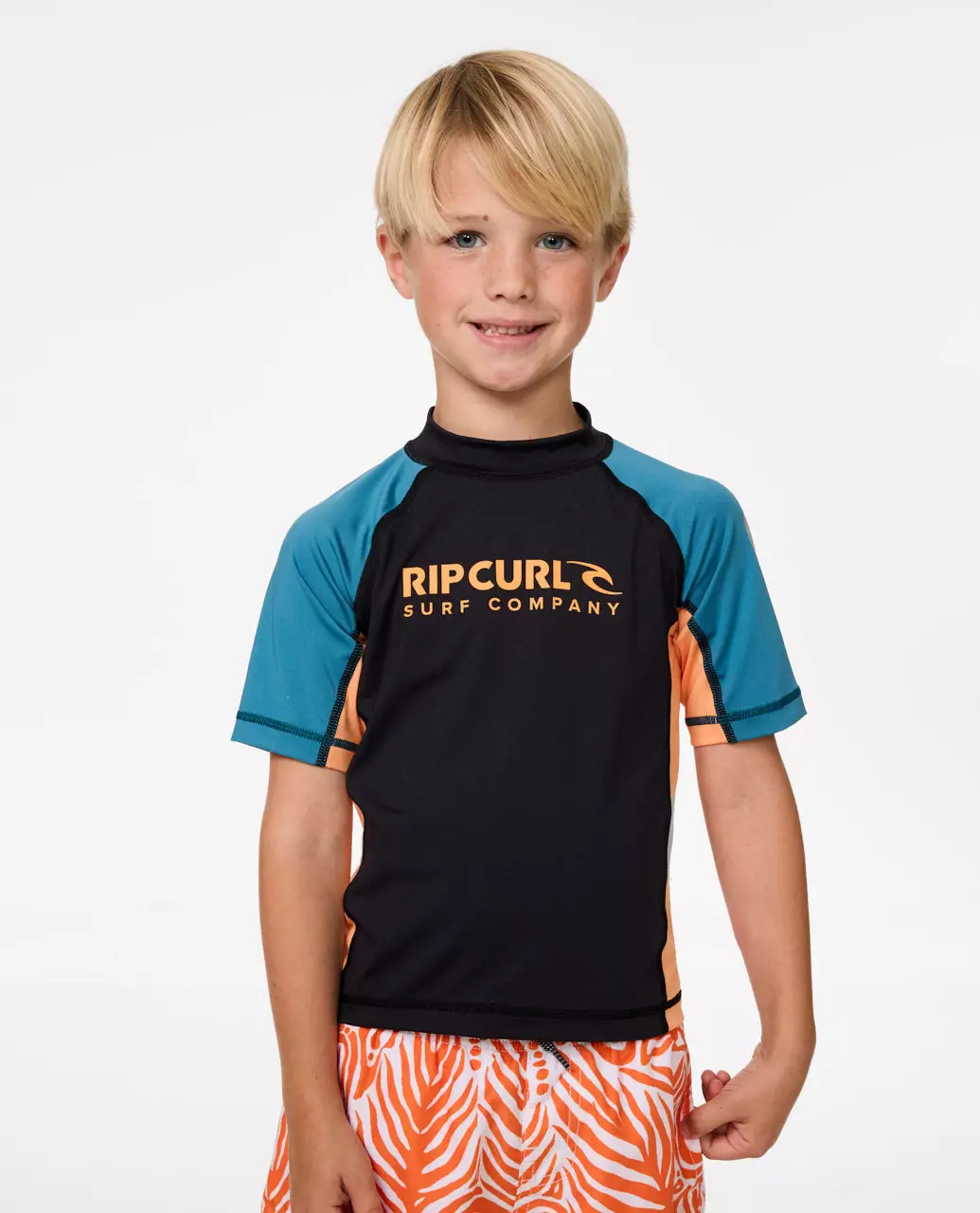 Rip Curl Kids Shock UPF Short Sleeve Rash Vest - Boys (1-8 years) - Storm Blue