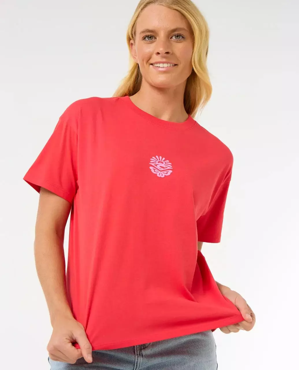 Rip Curl Women Icons Of Surf Relaxed Tee - Hibiscus Red