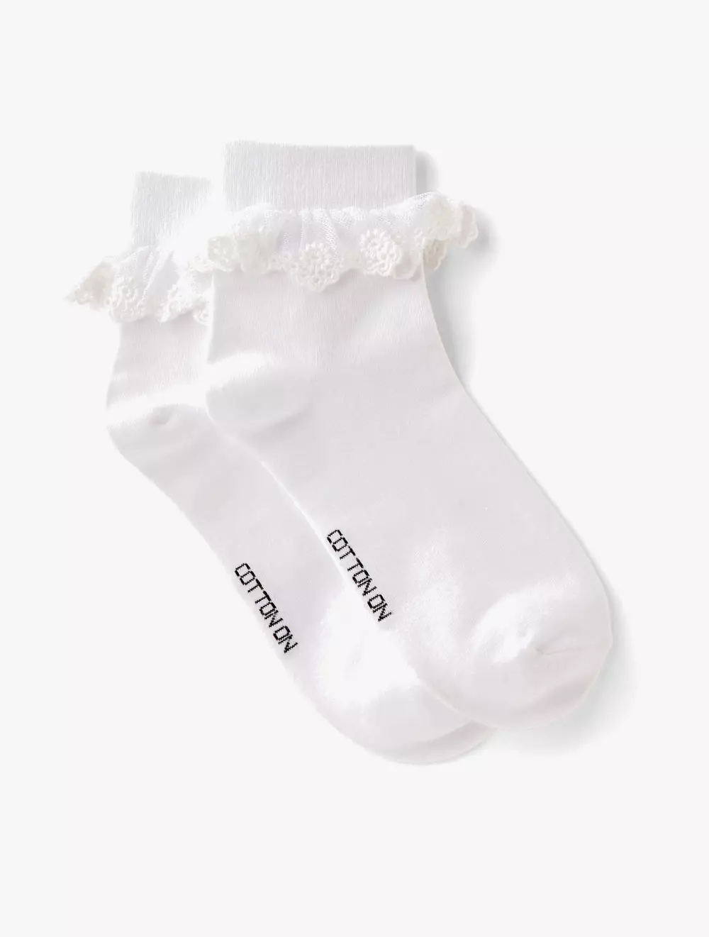 THE PERFECT PAIR PRETTY FRILL SOCK - WHITE/LACE