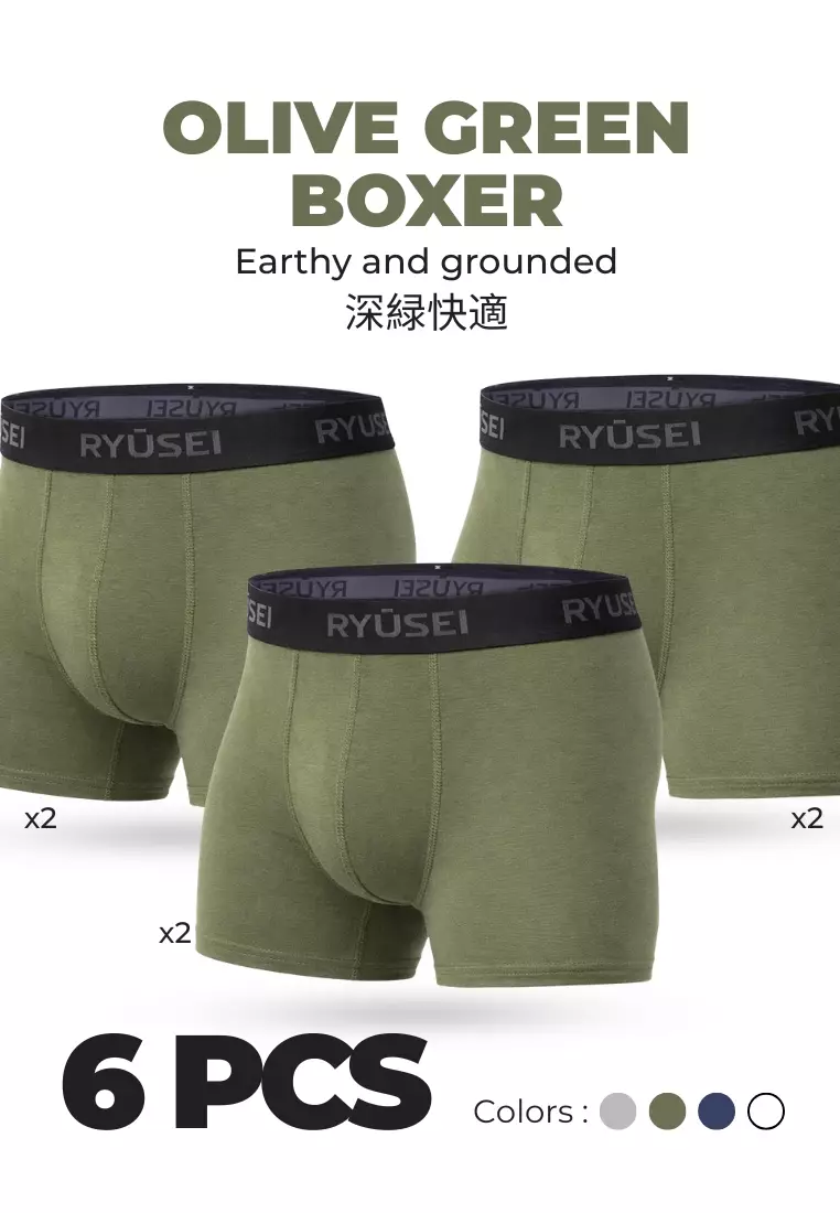 Ryusei Celana Dalam Pria Boxer Haruki Olive Green 6pcs | Pilihan Warna Netral Premium