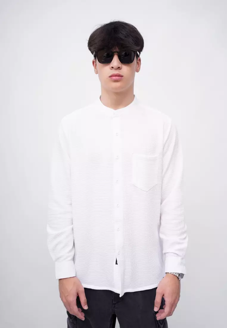 Ryusei Kemeja Kerah Koko Lengan Panjang Ultra Waffle White