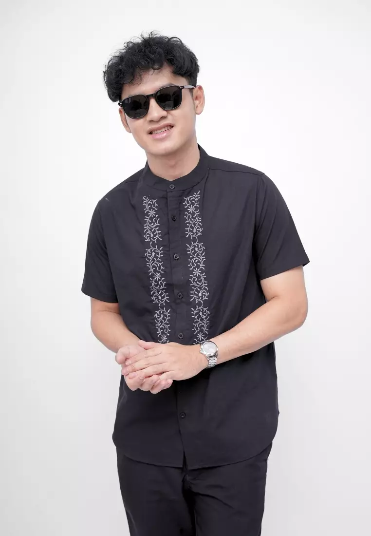 Ryusei Kemeja Kerah Koko Lengan Pendek Kagami Black
