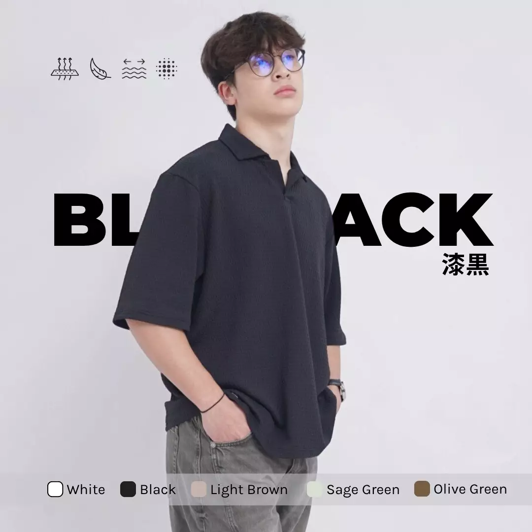 Ryusei Polo Pria Oversize SORA Knit Black