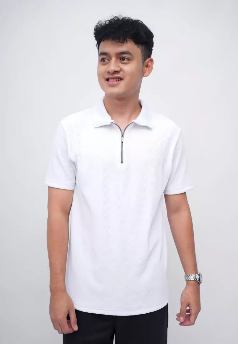 Ryusei Polo Pria SHIN Fit Basic White | Polo dengan Tekstur Unik