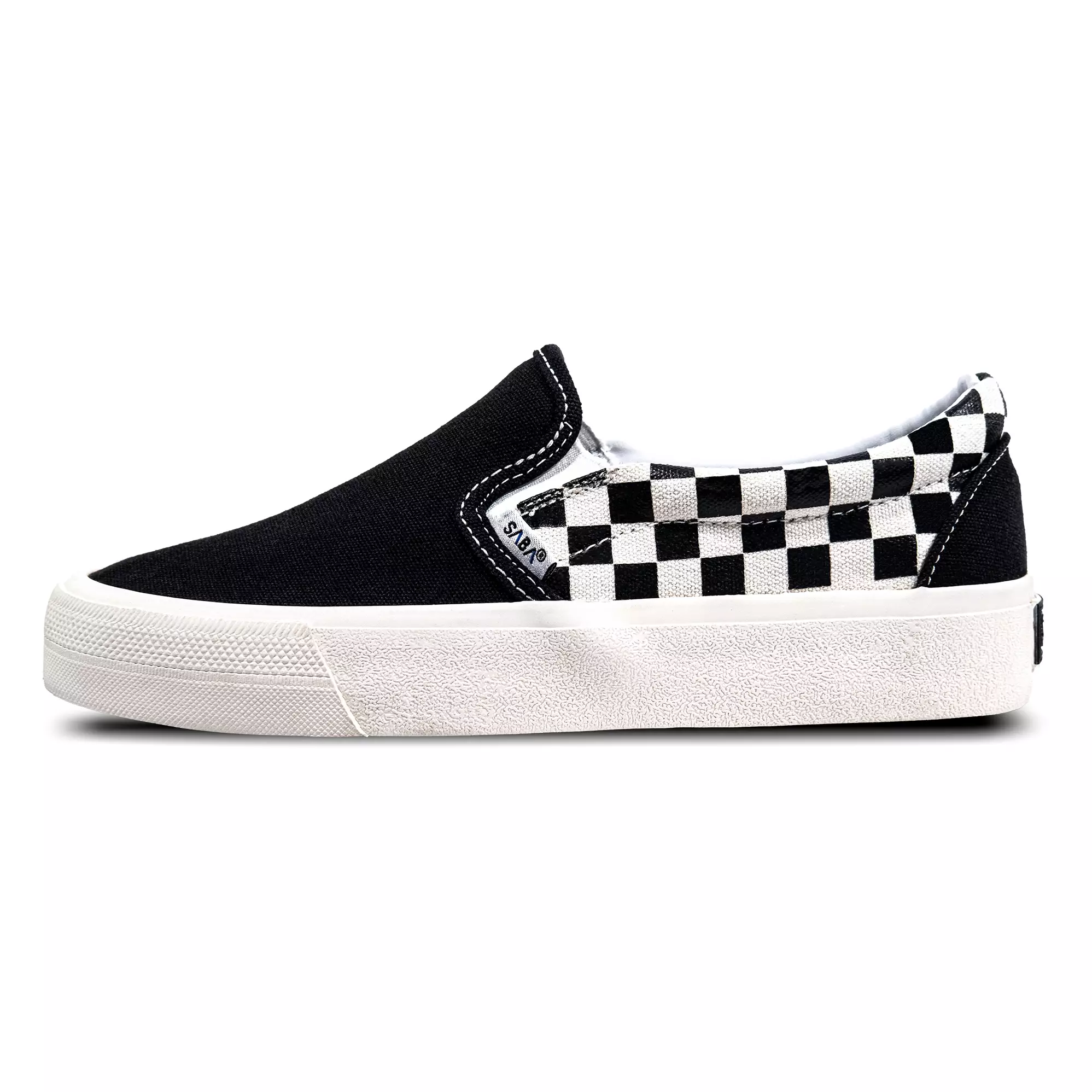SABA Checkerboard Slip On Half Black White - Sepatu Sneakers Casual Pria Wanita Original 100% CH-SL-16