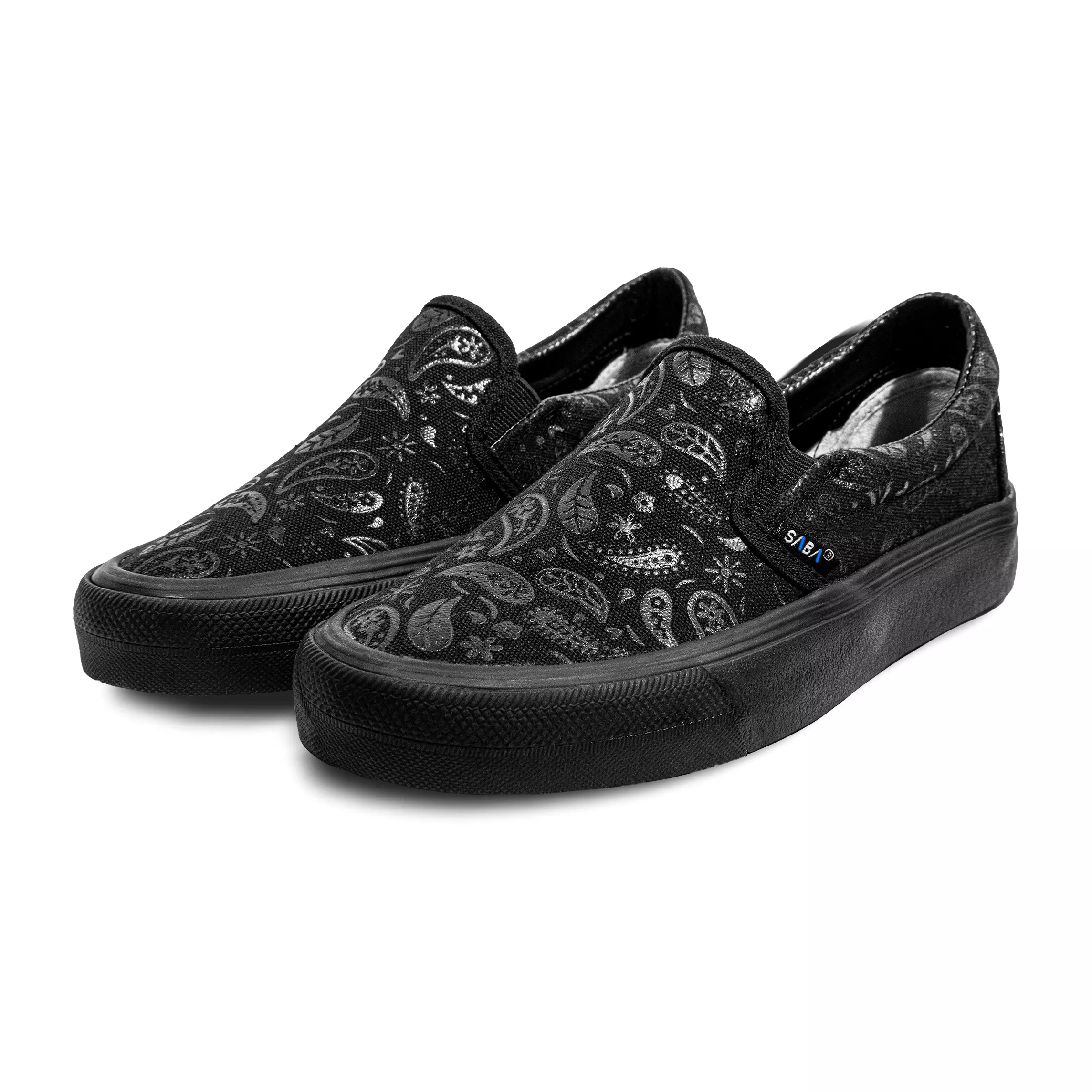 SABA Slip on Paisley Basic All Black - Sepatu Sneakers Casual Pria Wanita Original 100% PSL BS 02
