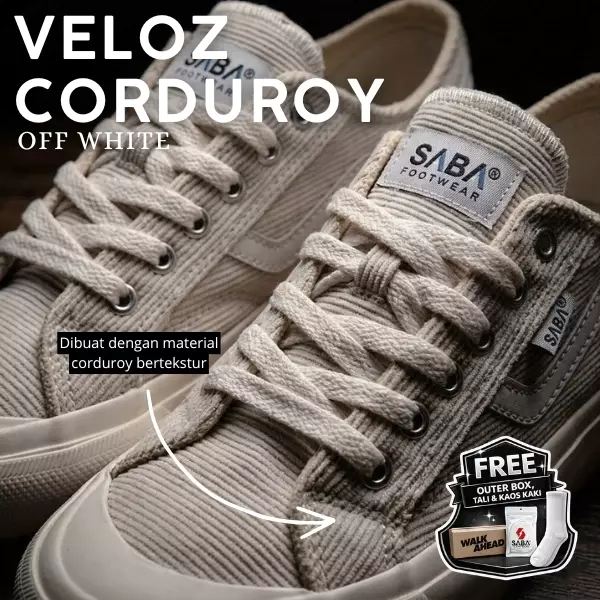 SABA Veloz Corduroy Off White - Sepatu Sneakers Casual Pria Wanita Original 100% VLZC-L-06