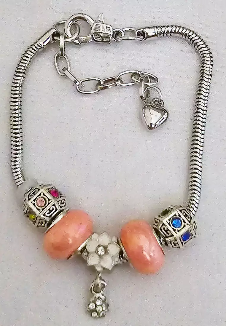 Accessories Wanita Diamante Cubic Pomora Charm Bracelet Gelang Wanita Silver & Pink