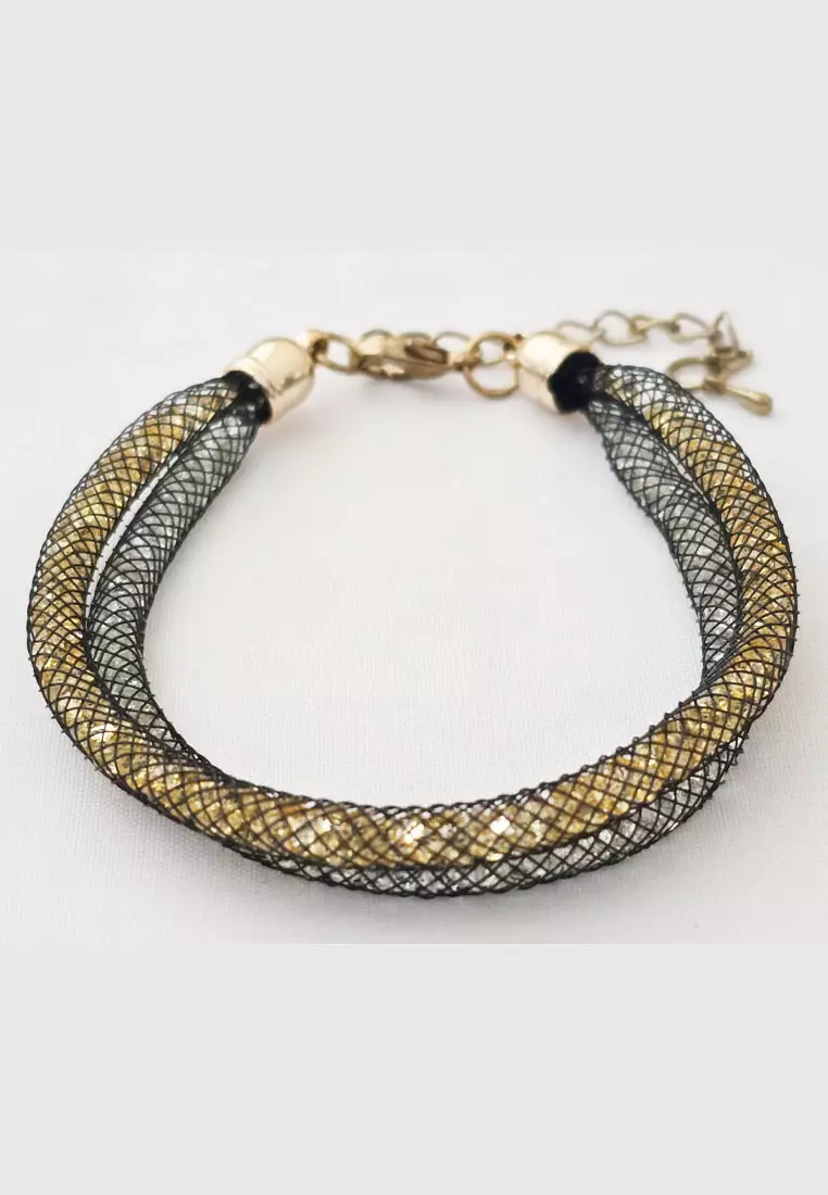 Accessories Wanita Net Diamante Bracelet Gelang Wanita Black& Gold