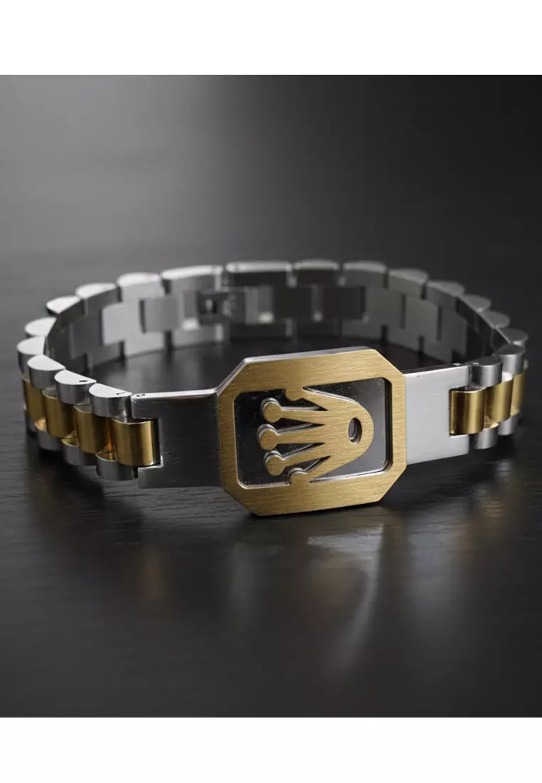 San MarcoAksesoris Gelang Pria Crown Rectangular Center Classic Design Stainless Steel Men's Bracelet Silver & Gold495000.00395000.00