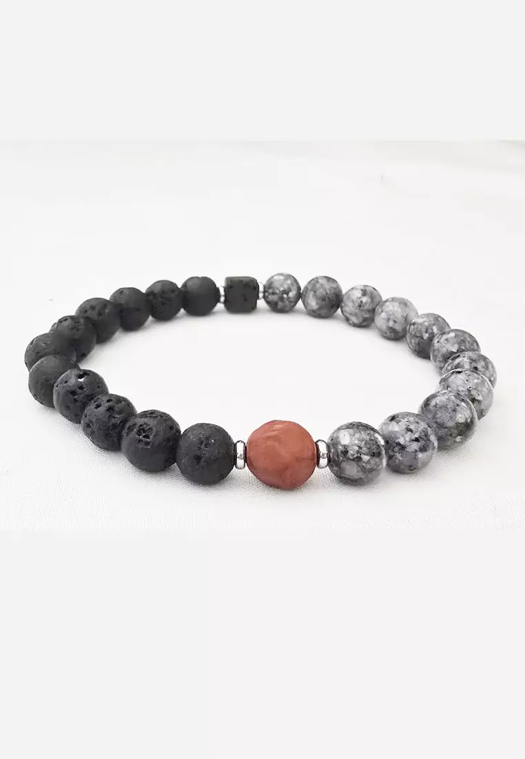 Aksesoris Gelang Pria Lava & Red Agate Center Bracelet Black & Rusty Red