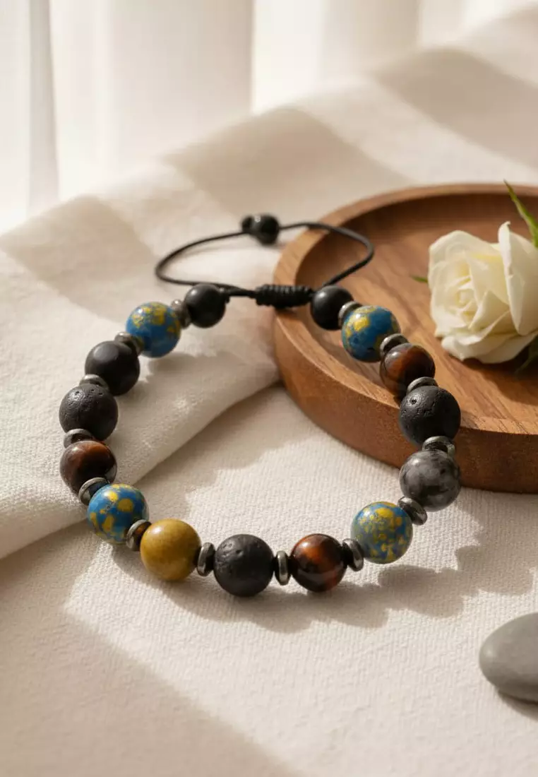 Aksesoris Gelang Pria Tex Multistone Macrame Bracelet Multicolour