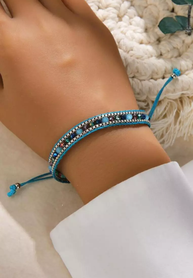 Aksesoris Gelang Wanita Crystals Beads Embellish Macrame Bracelet Blue & Multi
