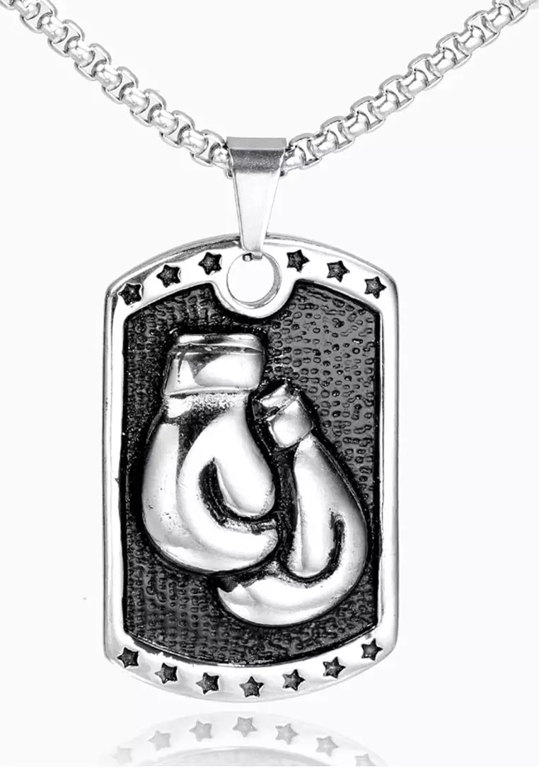 Aksesoris Pria Boxing Glove pair Pendant Premium Stainless Steel Necklace Kalung Pria Silver