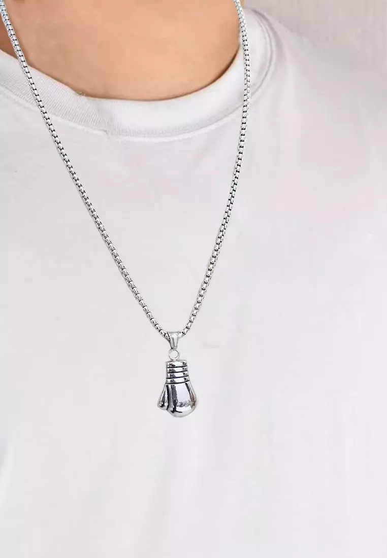 Aksesoris Pria Boxing Glove Stainless Steel Necklace Kalung Pria Silver