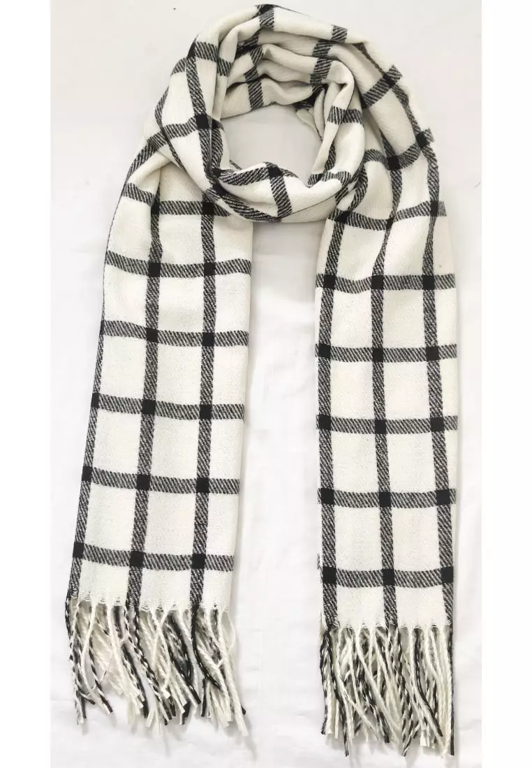 San MarcoAksesoris Pria Checked Plaid Cashmere Men's Shawl Syal Pria Milky White & Black345000.00245000.00