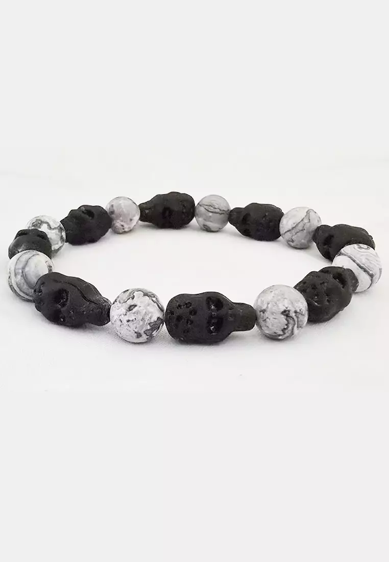 Aksesoris Pria Skull Encarved Premium Howlite Bracelet Black & White