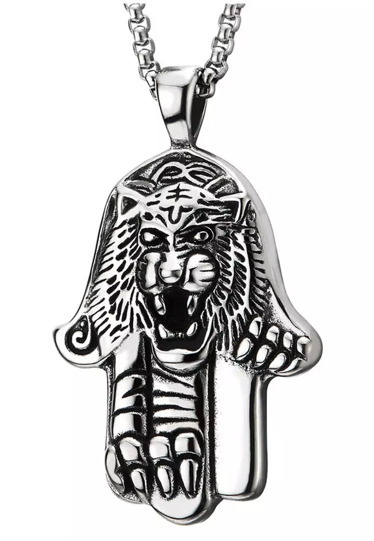 Aksesoris Pria Tiger Hand Pendant Premium Stainless Steel Necklace Kalung Pria Silver