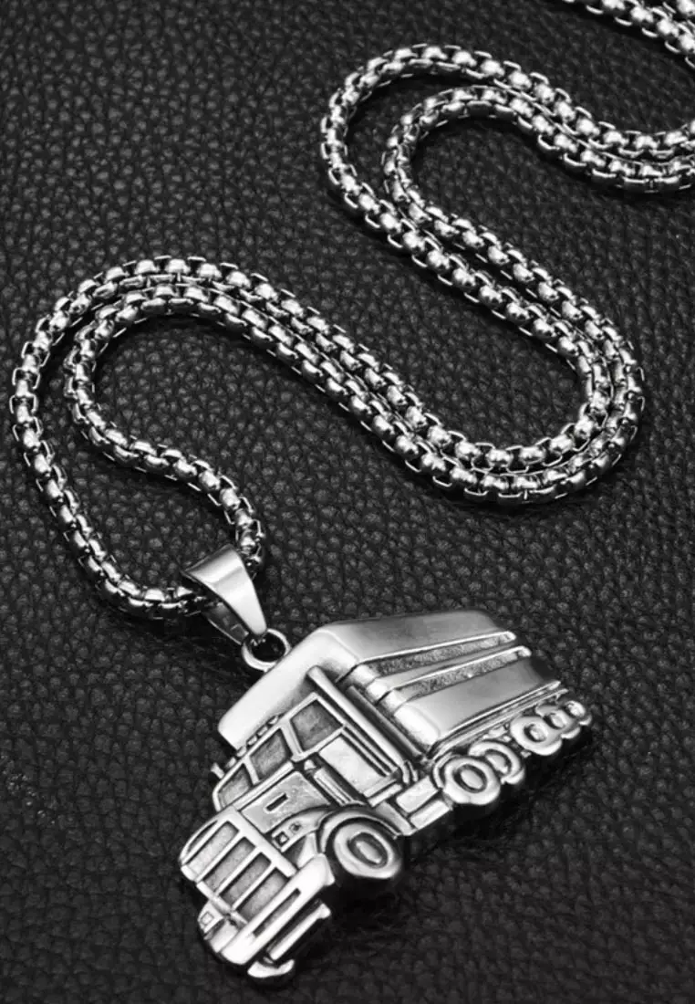 Aksesoris Pria Truck Pendant Premium Stainless Steel Necklace Kalung Pria Silver