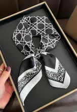 Aksesoris Scarf Leopard Print Border Motif Silky Square Satin Scarf Segi Empat Ukuran Kecil Brown & Beige