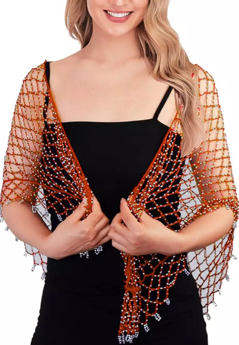 Aksesoris Wanita Beaded Triangle Scarf Segitiga Syal Wanita Saffron & Silver