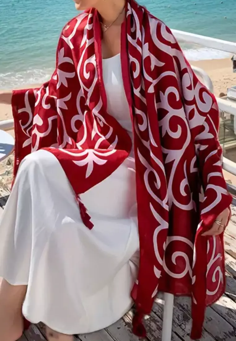 San MarcoAksesoris Wanita Boho Style Pattern Tassels Viscose Shawl Syal Wanita Burgundy345000.00225000.00