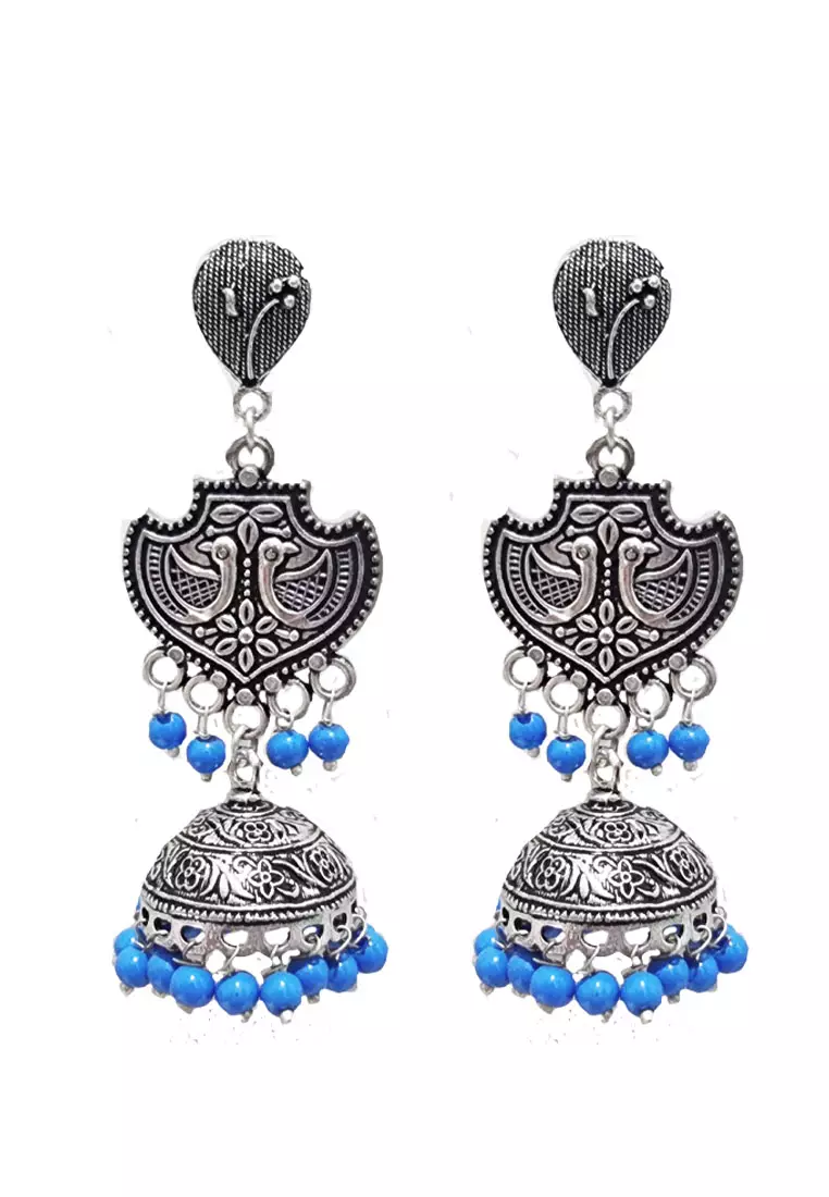 Aksesoris Wanita Carved Beads Trinkets Earring Anting Wanita Silver & Blue