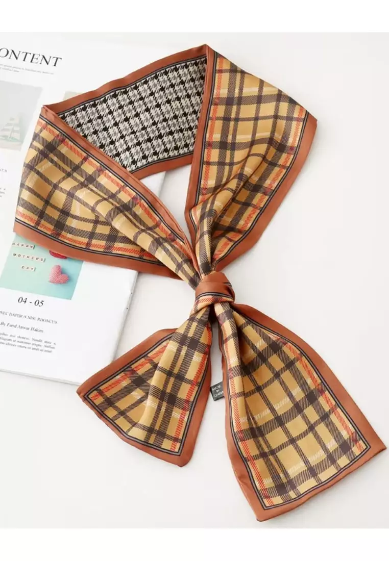 Aksesoris Wanita Double Side Checks Skinny Multi purpose Scarf Wanita Brown & Multi