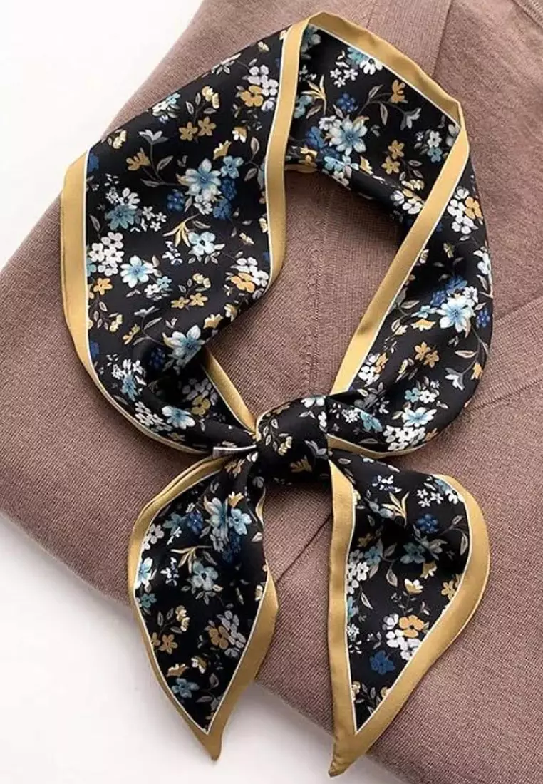 Aksesoris Wanita Floral Gold Border Twilly Skinny Multi purpose Scarf Multicolour