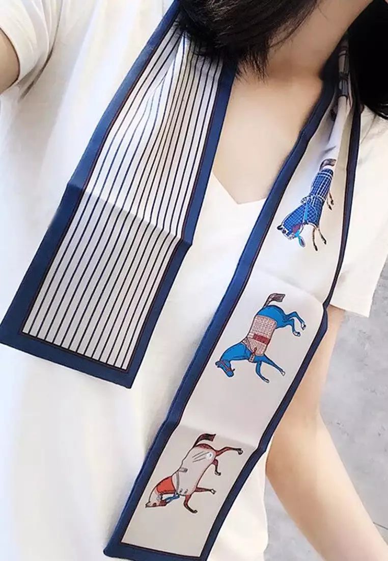 San MarcoAksesoris Wanita Horse & Stripes Twilly Skinny Multi purpose Scarf White, Multi & Blue88000.0069000.00