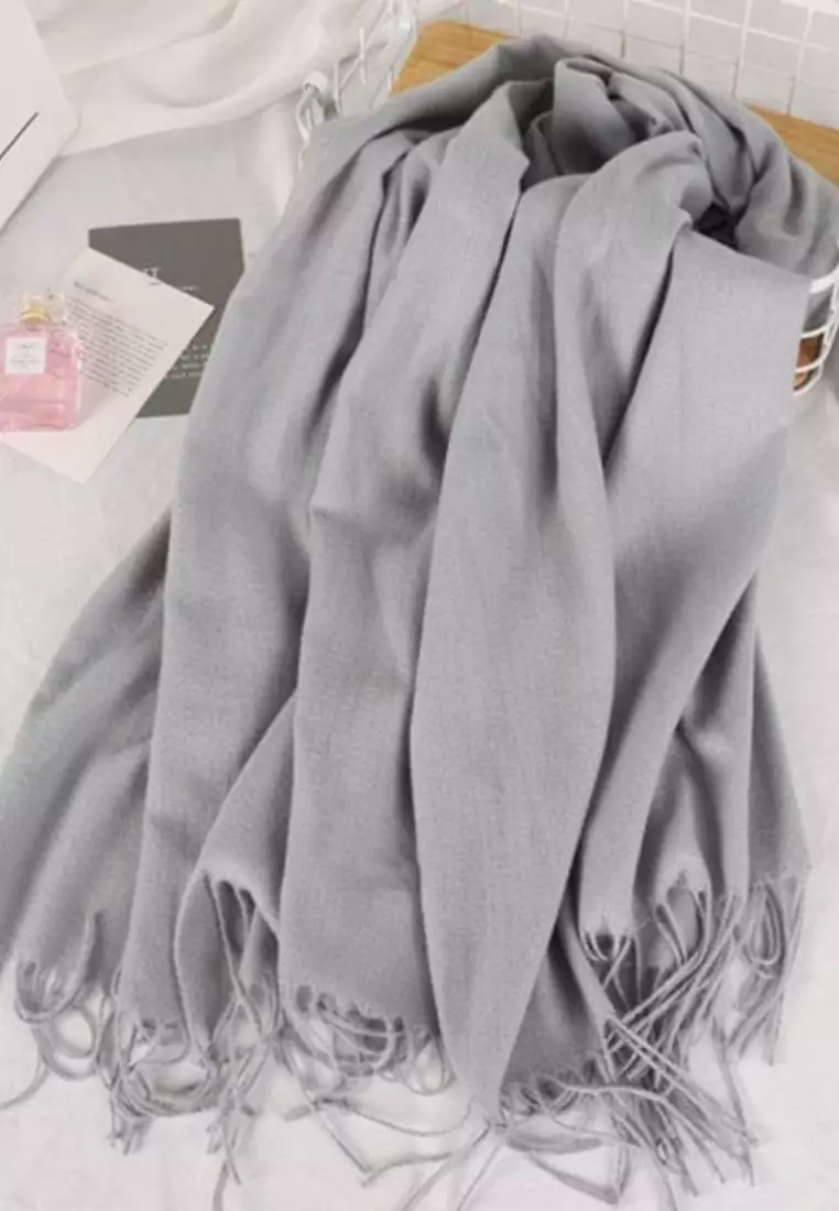 Aksesoris Wanita Plain Viscose Shawl Pashmina Syal Wanita Pebble Grey