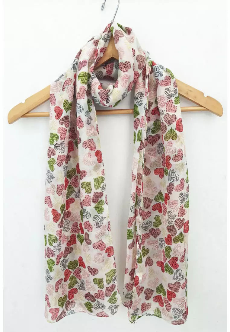 Aksesoris Wanita Printed Rose Hearts Scarf White, Pink & Multi