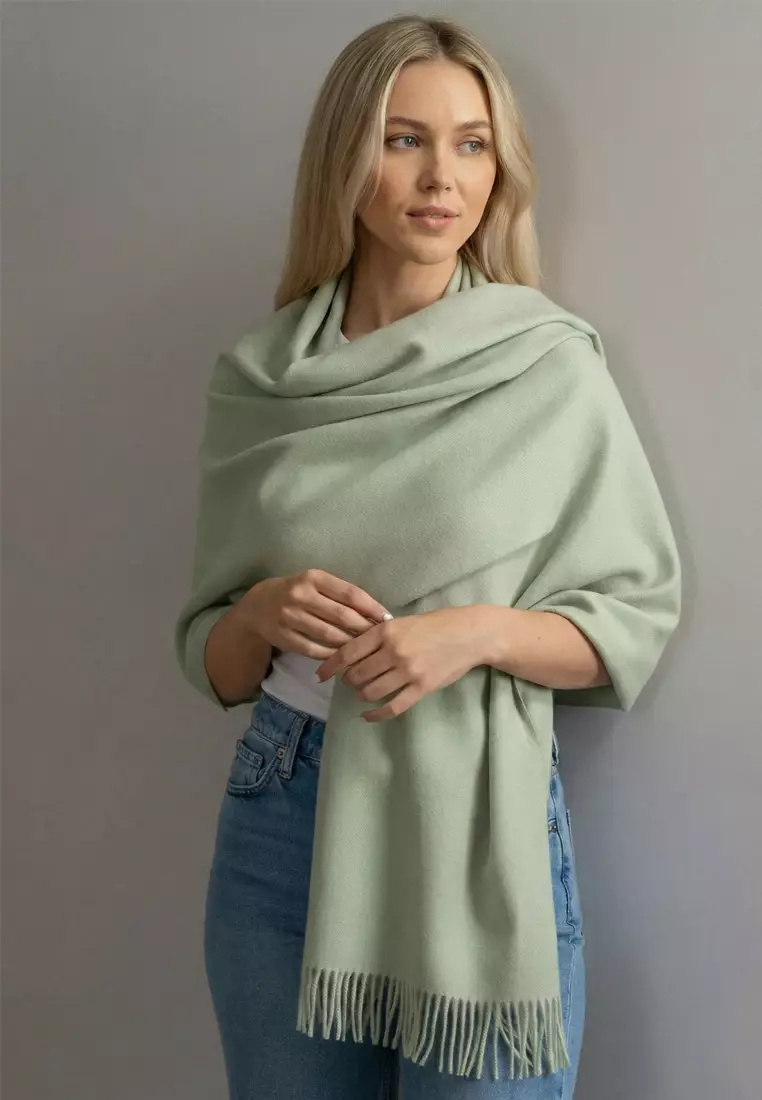 Aksesoris Wanita Pure 100% Virgin Wool Cashmere Shawl Syal Wanita Kasmir Pistachio Green