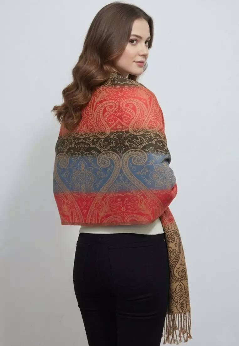Aksesoris Wanita Reversible Viscose Arabesque Weave Pattern Pashmina Shawl Syal Gradasi Wanita Sunset Bloom