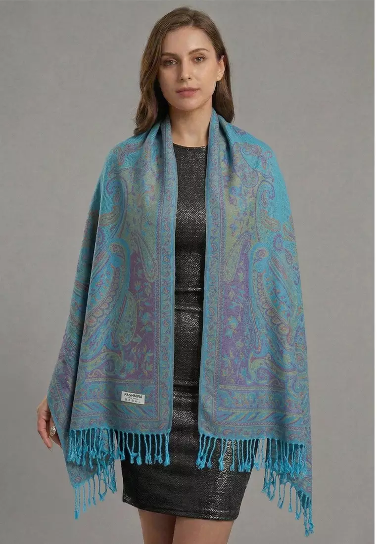 San MarcoAksesoris Wanita Reversible Viscose Full Paisley Pattern Pashmina Shawl Syal Wanita Teal Blossom345000.00259000.00