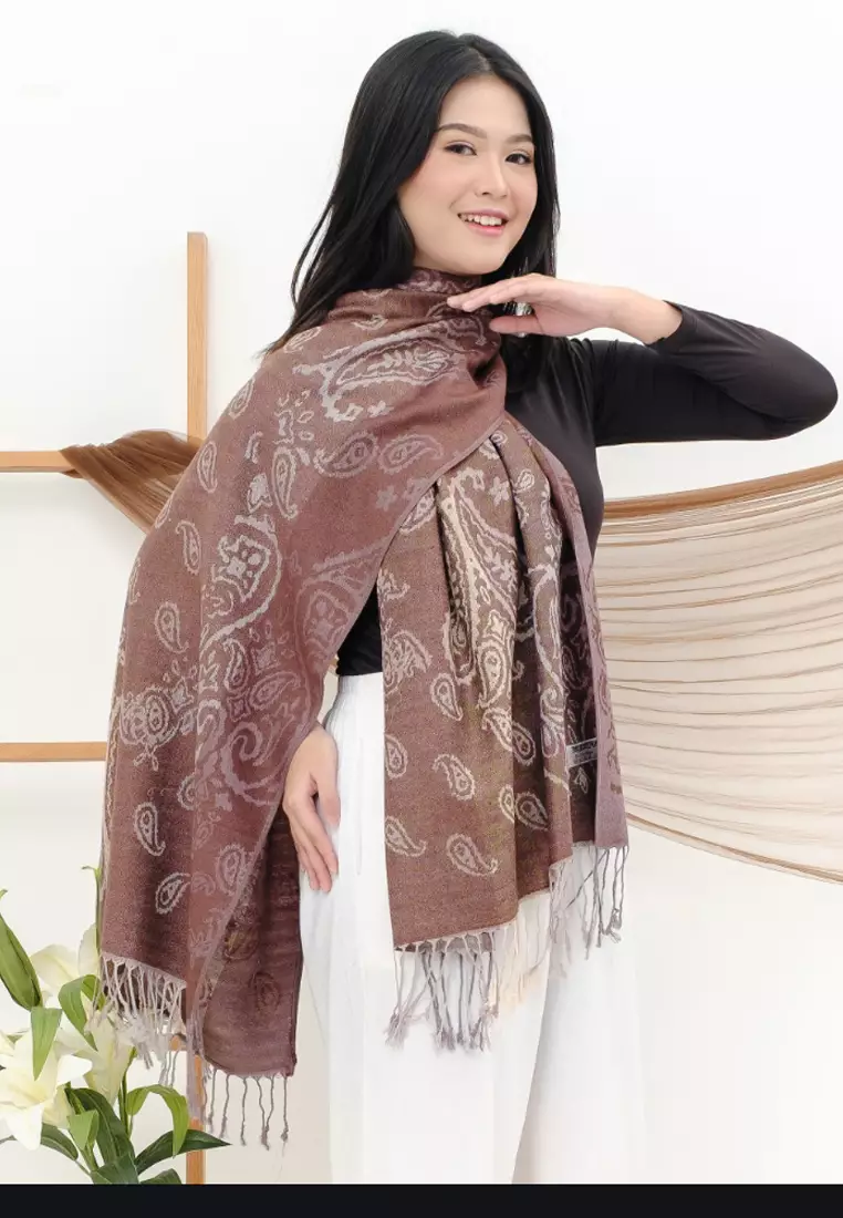 San MarcoAksesoris Wanita Reversible Viscose Gradient Paisley Pattern Pashmina Shawl Syal Gradasi Wanita Cocoa Brown345000.00245000.00