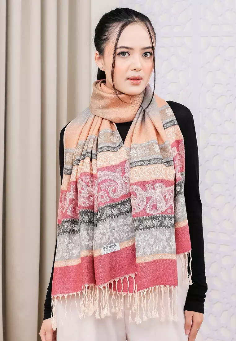 Aksesoris Wanita Reversible Viscose Multicolour Vintage Pattern Pashmina Shawl Autumn Glow