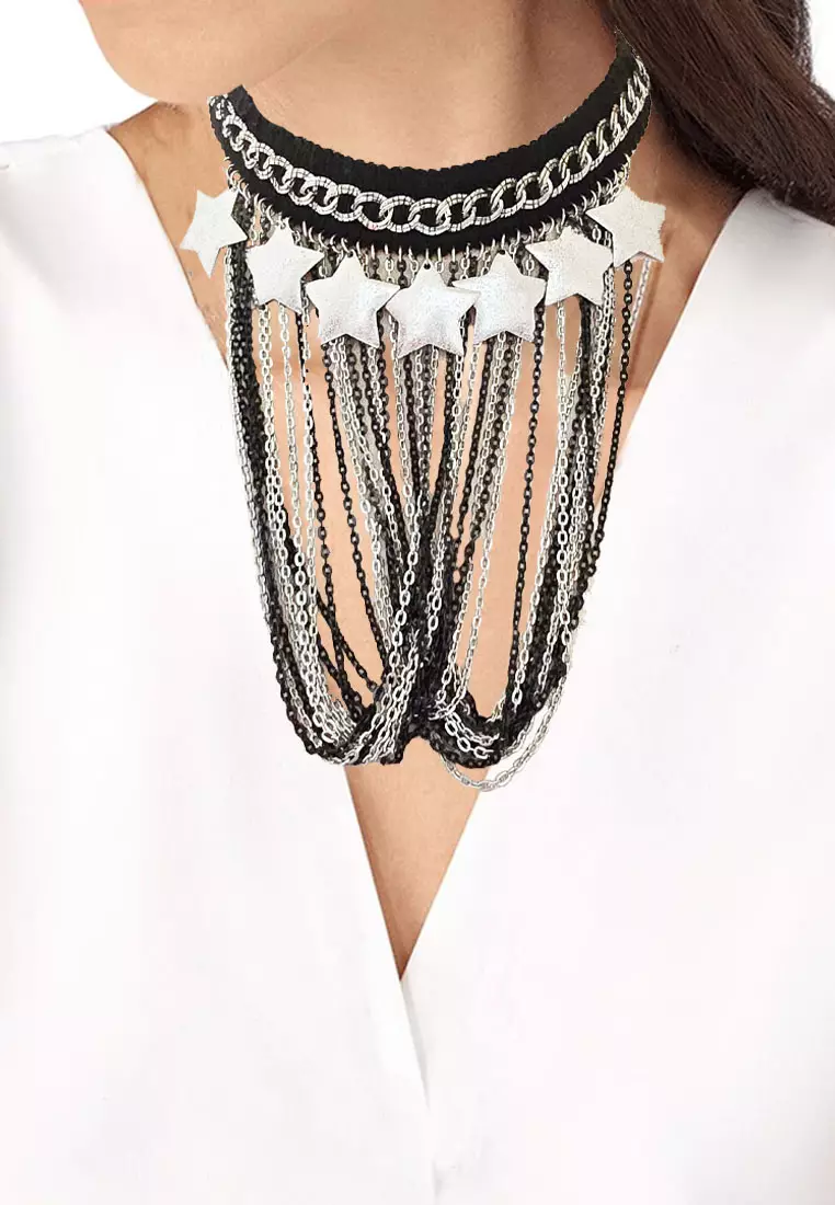 Aksesoris Wanita stars Chains Choker Necklace Kalung Wanita Black & Silver